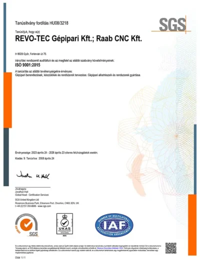 Az ISO 9001:2015 minőségirányítási rendszer biztosítja, hogy tervezési és gyártási folyamataink strukturált, ellenőrzött keretek között történnek.